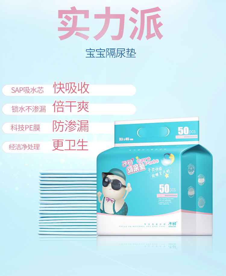 子初婴儿隔尿垫 防水透气新生儿床单儿童一次性床垫50片 33*45cm
