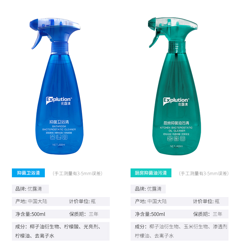 优露清(Explution) 油烟机清洗剂瓷砖浴室清洁剂厨房油污浴室玻璃清洗液厨卫清洁套装1L