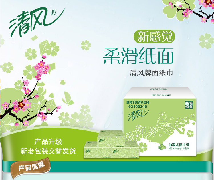 清风 【第二件立减5元!多买多减!】抽纸原木纯品纸抽卫生纸3层餐巾纸共12包面巾纸家用纸巾抽纸